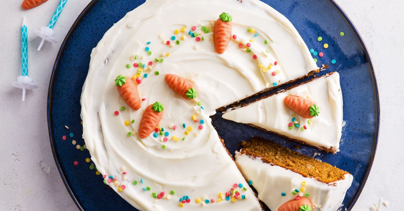 Kuchen gleichmäßig mit dem Frischkäse-Frosting bestreichen und eine Stunde kühl stellen. Nach Belieben mit Zuckerdeko und Kerzen verzieren.