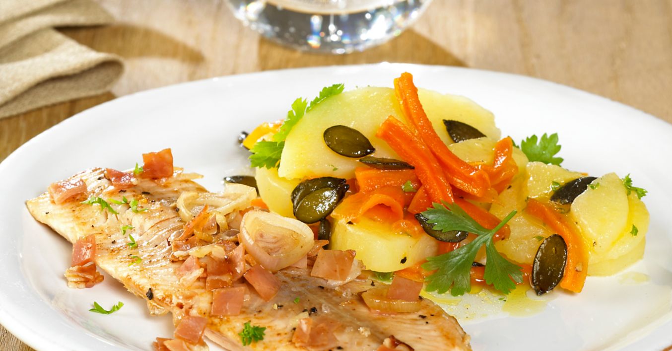 Saiblingsfilet mit Schinkentopping
