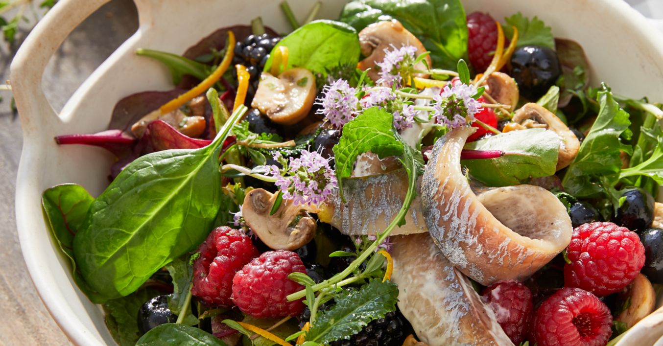 Salat mit Beeren und Matjesfilets (Island)
