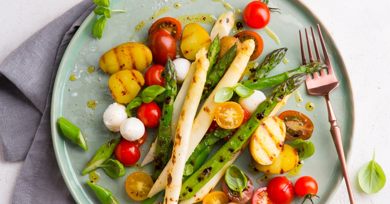 Salat von gegrilltem Spargel mit Kartoffel und Mozzarella