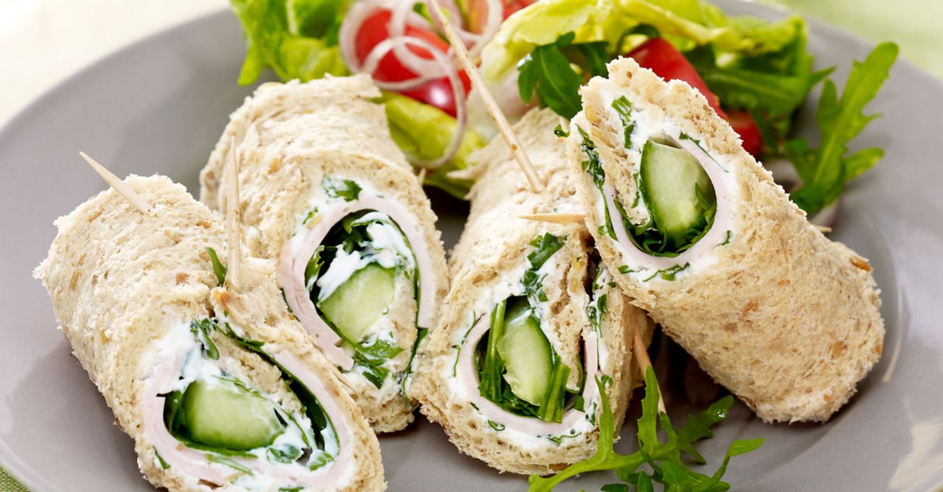 Gurke waschen, putzen und der Länge nach vierteln. Restlichen Rucola, Aufschnitt und Gurke auf der Quarkcreme verteilen, die Toastscheiben eng aufrollen, mit Holzspießen fixieren und nach Wunsch mit einem frischen Salat servieren.