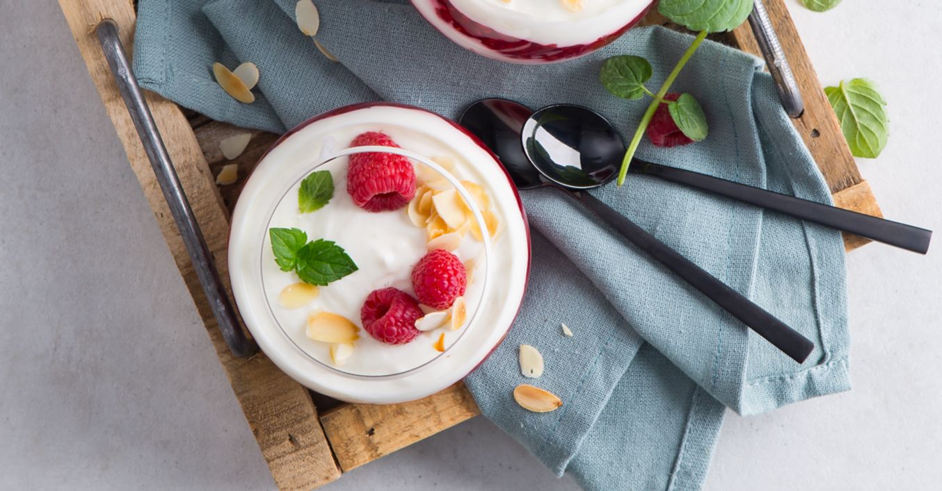 Schichtdessert mit Himbeeren und Joghurt