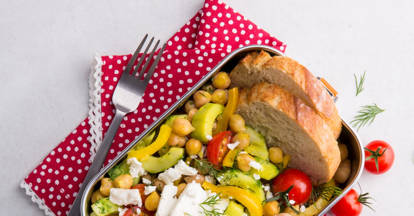 Dill waschen, fein schneiden und zusammen mit den Tomatenhälften unterheben. Gemüse für den Transport in auslaufsichere Gläser füllen, mit zerbröseltem Feta bestreuen und mit frischem Baguette servieren.