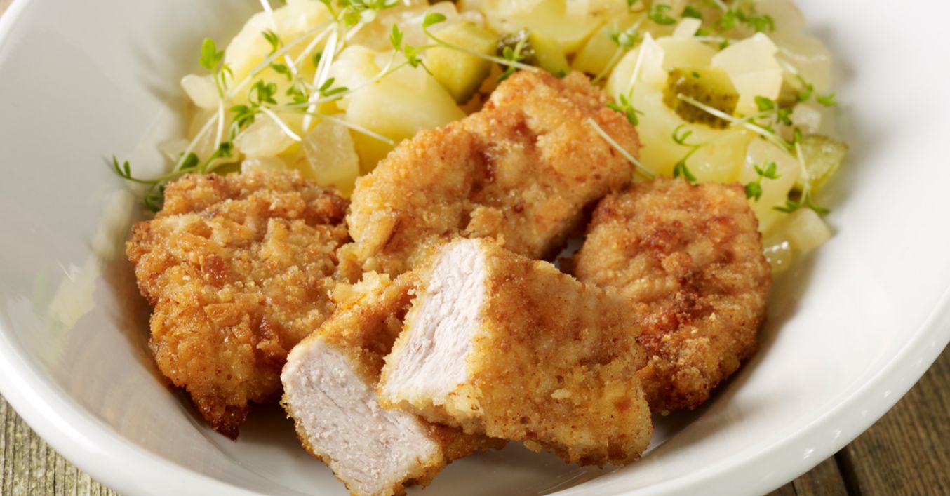 Schnitzelstreifen in Brezelpanade