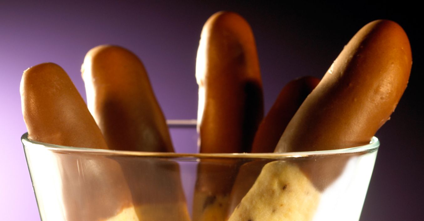 Teig zu ca. 30 kleinen Kugeln formen und zu ca. 5 cm langen Stäben rollen. Teigstäbchen auf ein mit Backpapier ausgelegtes Backblech legen und ca. 15 Minuten backen (Elektro- und Erdgasbackofen 180 Grad/Stufe 1, Umluft 160 Grad).