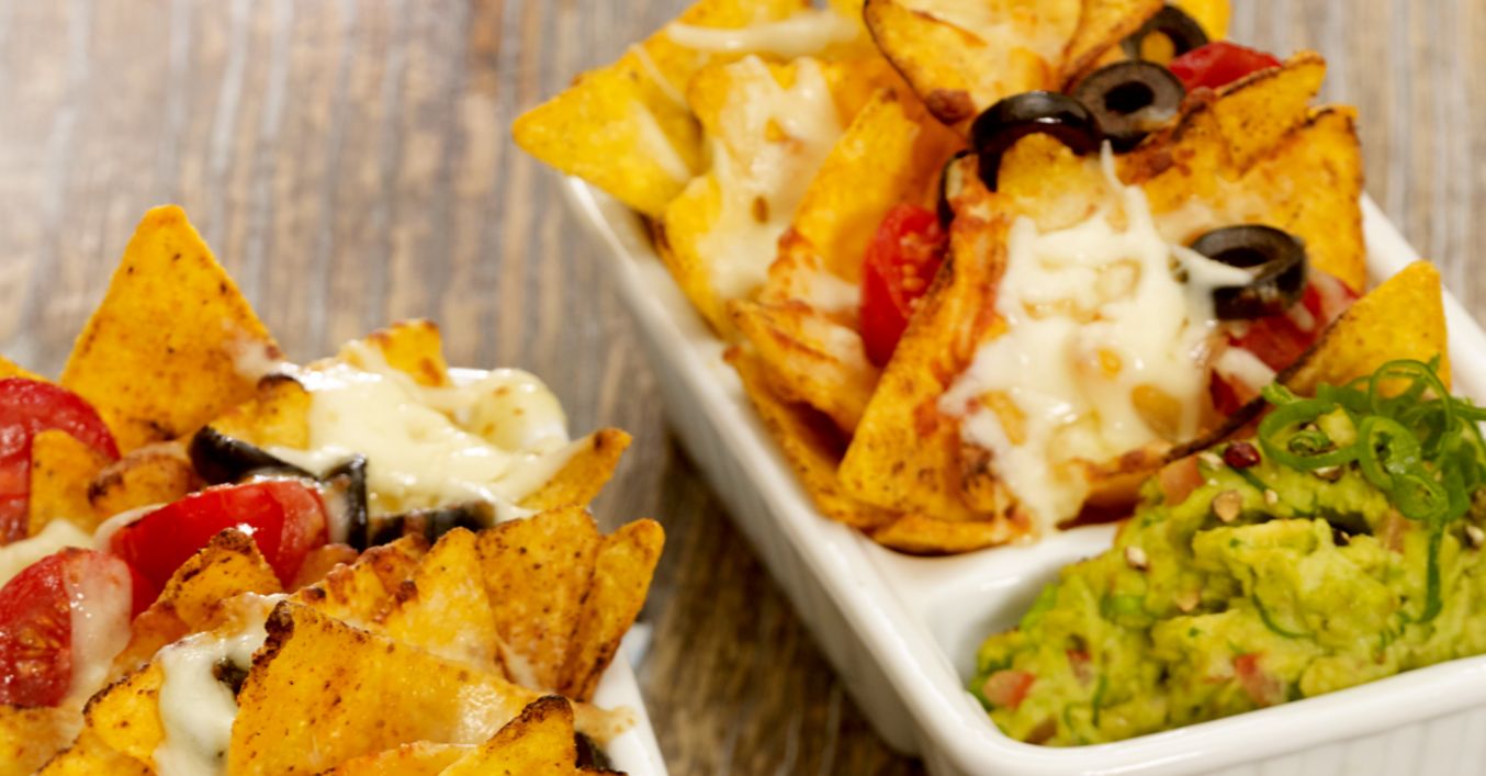 Nachos im vorgeheizten Backofen bei 180 °C (Gas: Stufe 3, Umluft 160 °C) circa 10 bis 15 Minuten überbacken.