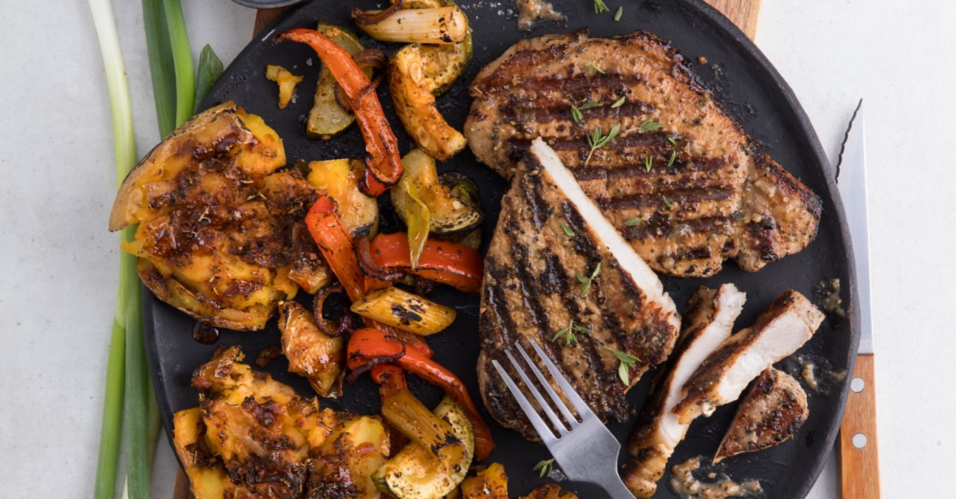 Schweinesteaks mit Smashed Potatoes