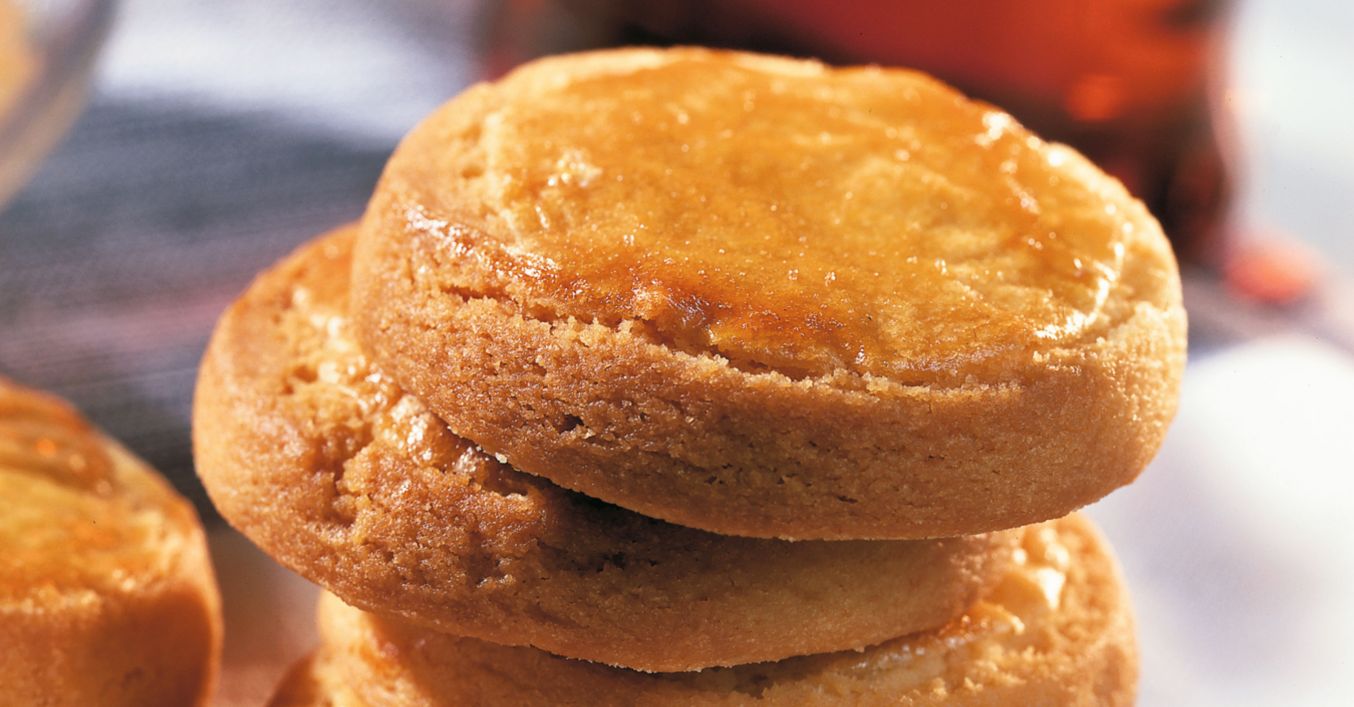 Etwas Mehl auf die Arbeitsfläche streuen, Teig circa anderthalb Zentimeter dick ausrollen und Kreise mit einem Durchmesser von circa fünf Zentimetern ausstechen. Auf ein mit Backpapier ausgelegtes Blech legen.