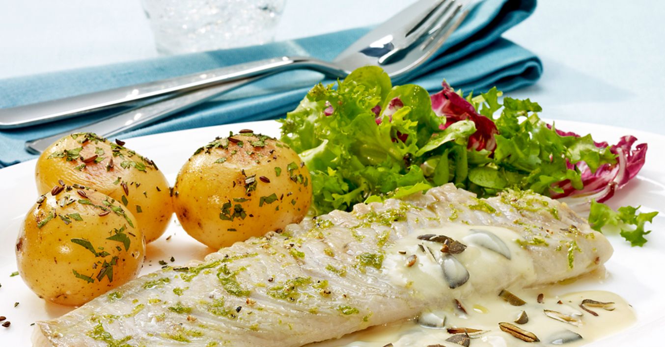 Hollandaise mit Limettensaft, Salz und Pfeffer abschmecken und mit dem Fisch und Kräuterkartoffeln servieren.