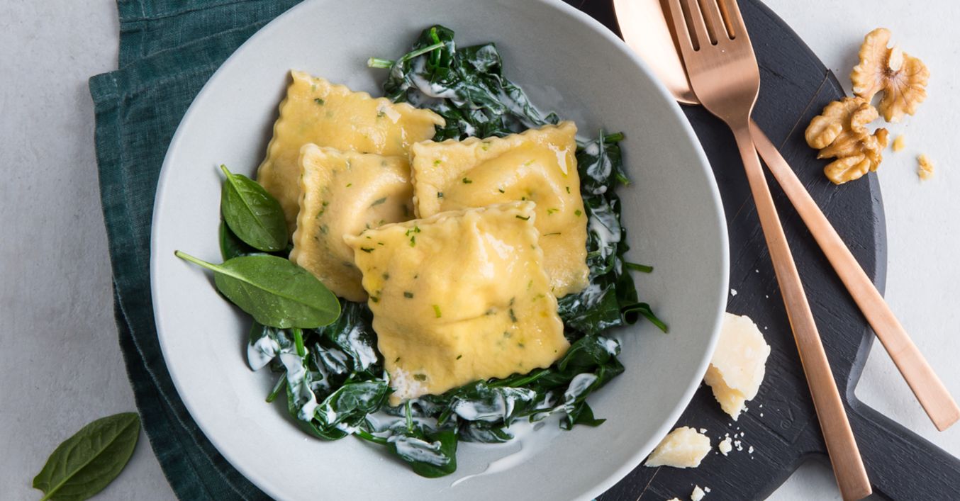 Selbst gemachte Kräuter-Ravioli mit Käse-Nussfüllung