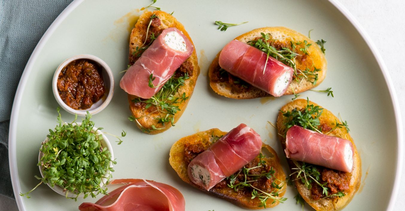 Serranoschinken-Röllchen-Crostini