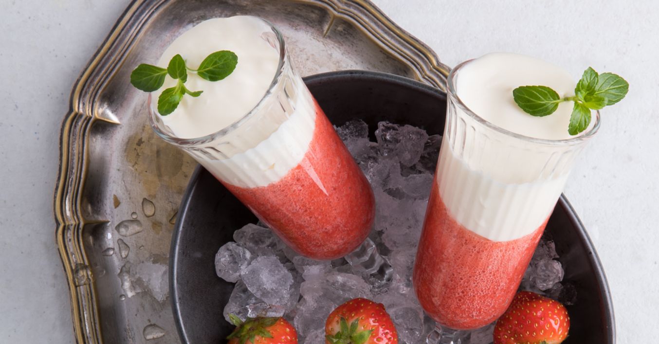 Die Likörsahne auf den Cocktail geben und nach Wunsch mit einem Strohhalm und mit Erdbeeren garniert servieren.