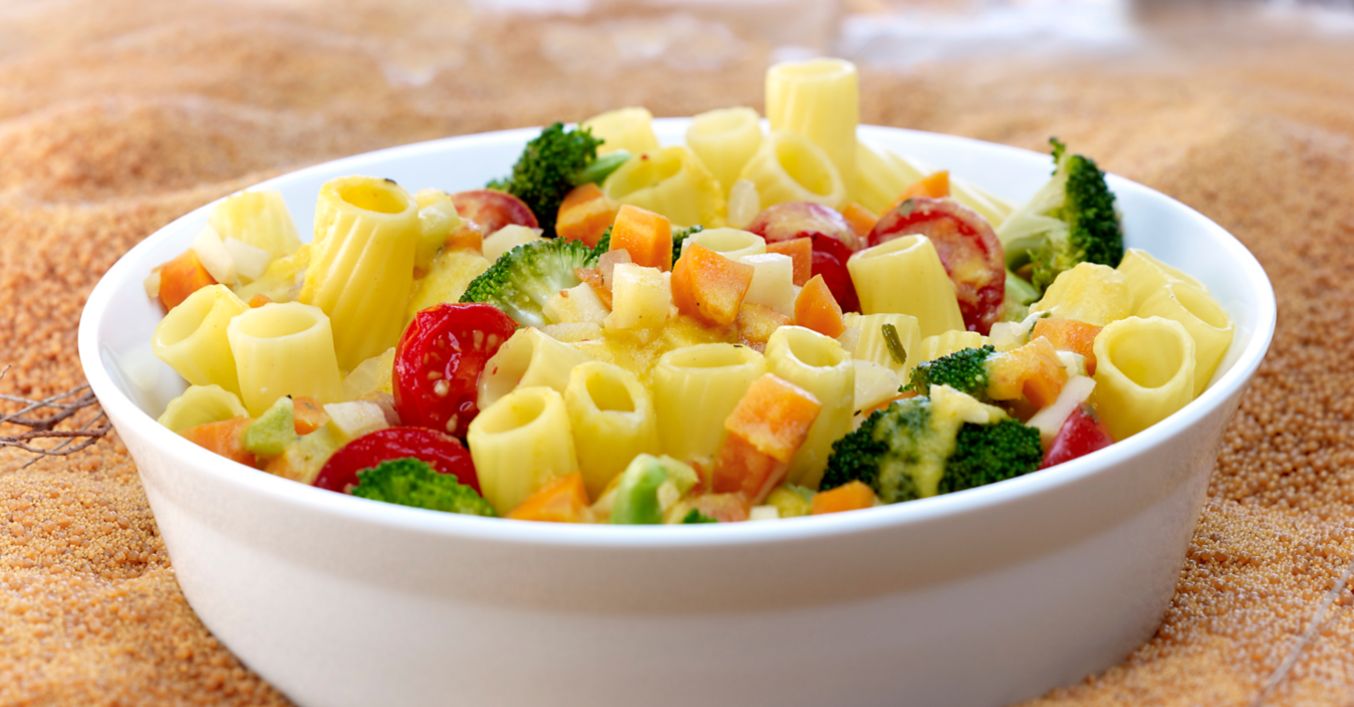In der Zwischenzeit restliche Butter erhitzen und die Brokkoliröschen mit etwas Wasser circa 4 Minuten darin dünsten. Restliche Gemüsewürfel und Tomaten dazugeben, erhitzen und mit Salz und Pfeffer würzen.
