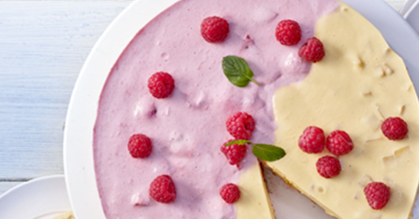 Beide Cremes gleichzeitig von den Seiten in die Form einfüllen und circa 4 Stunden kalt stellen.