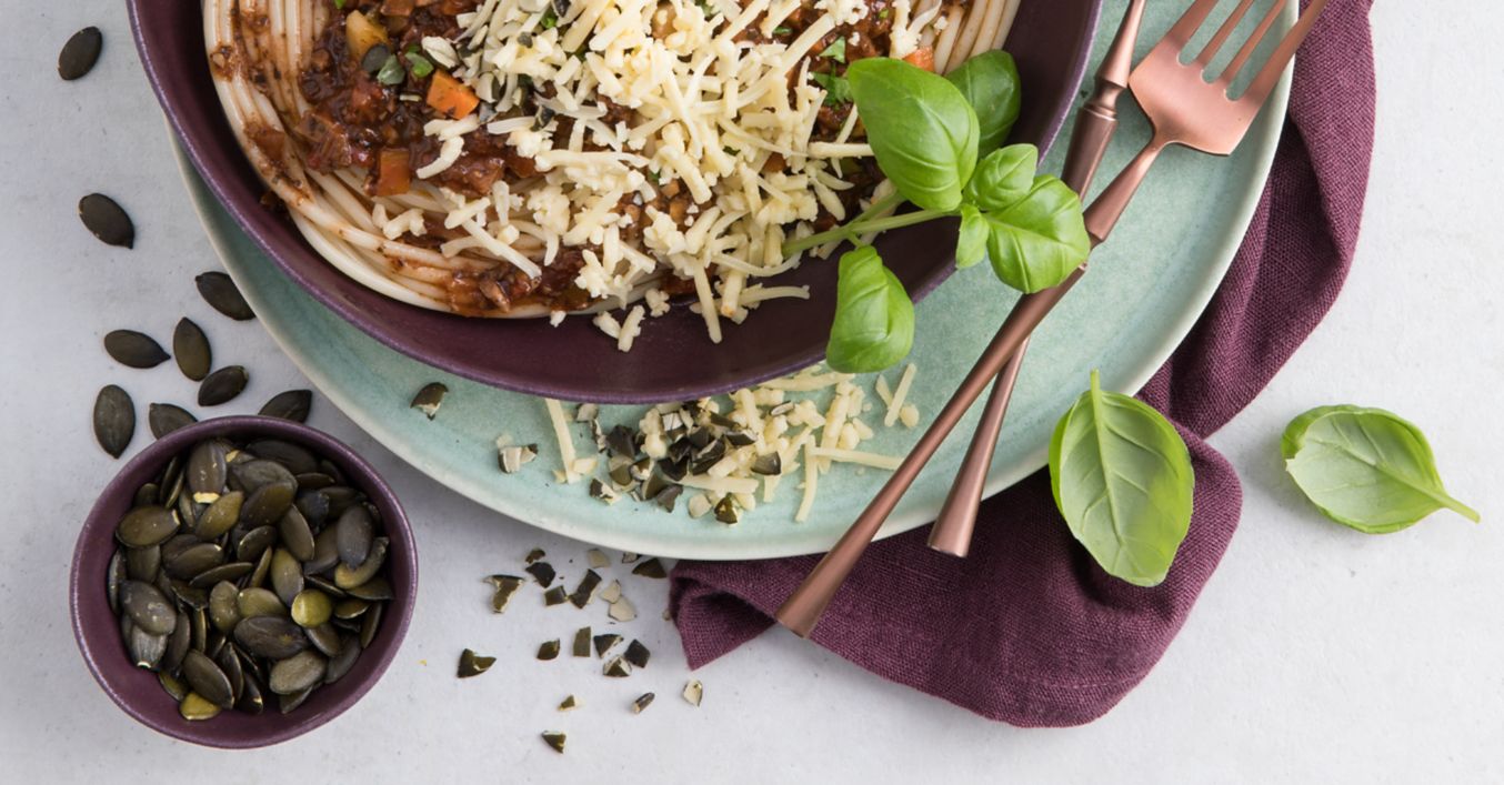 Spaghetti mit Kürbiskern-Bolognese