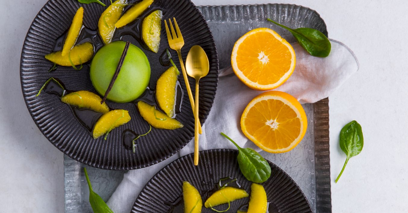 Spinat-Panna-Cotta mit marinierten Orangenfilets