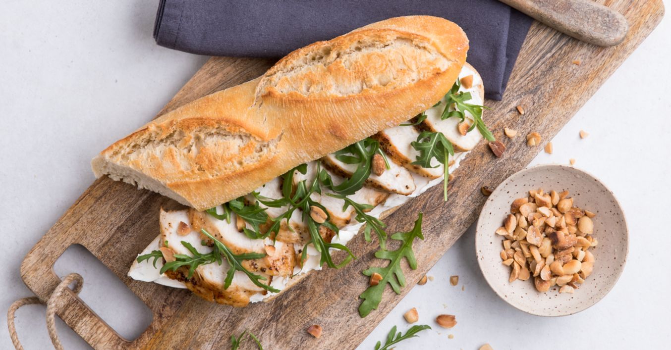 Steinofenbaguette mit gebratenem Hühnerbrustfilet