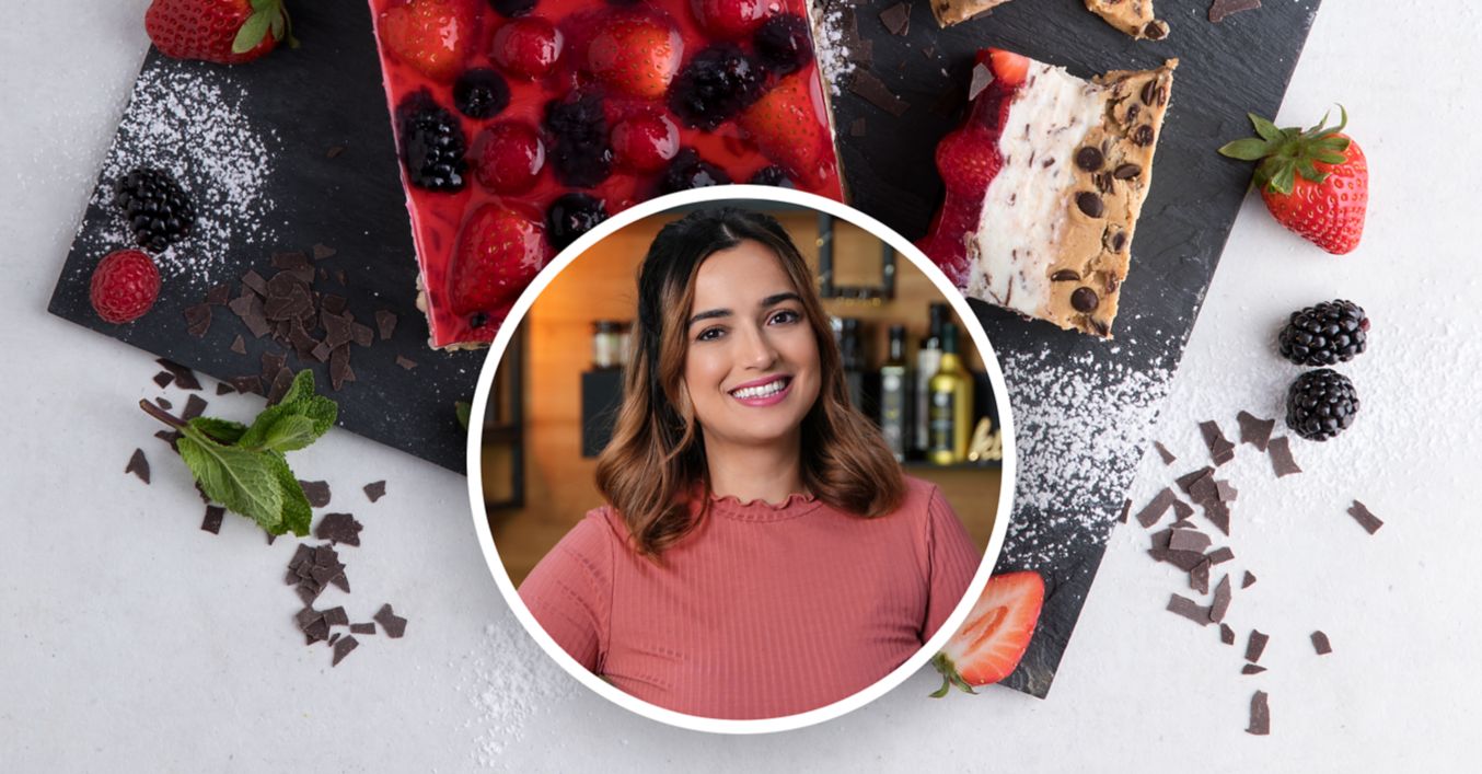 Stracciatella-Creme auf dem Cookiedough-Boden verteilen und glatt verstreichen.