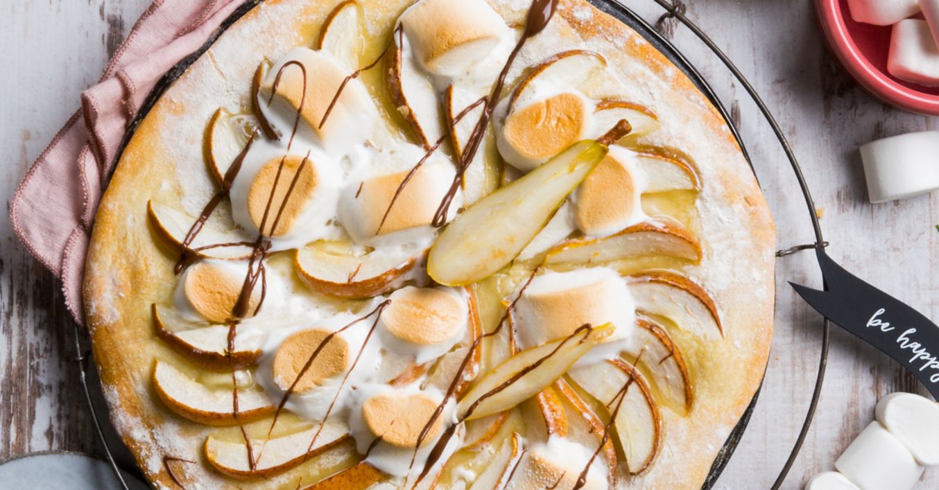 Süße Birnen-Pizza mit Marshmallows