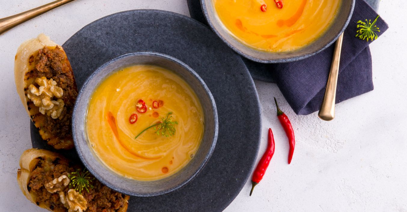 Süßkartoffelsuppe mit geröstetem Walnuss-Crostini