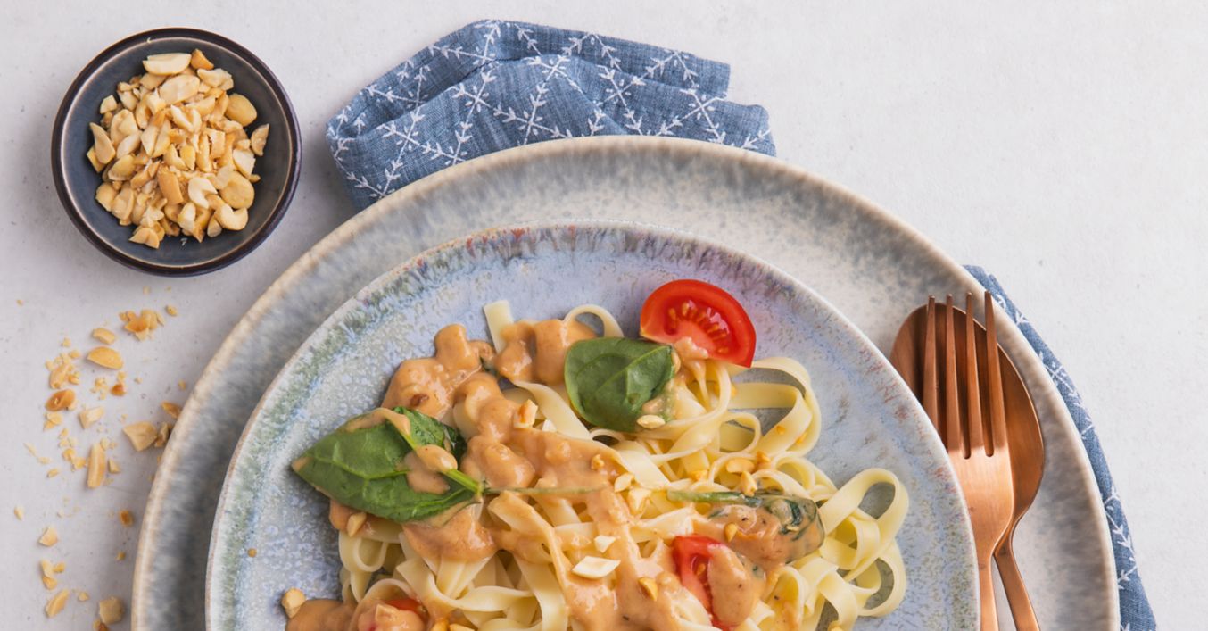 Tagliatelle in veganer Spinat-Erdnusssoße