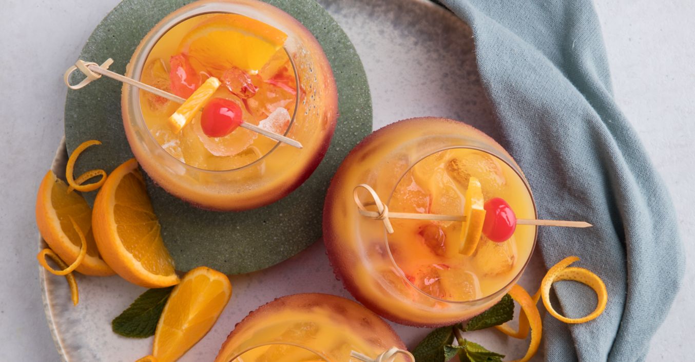 Tequila Sunrise nach Wunsch mit Orangenscheiben oder Cocktailkirschen garniert servieren.