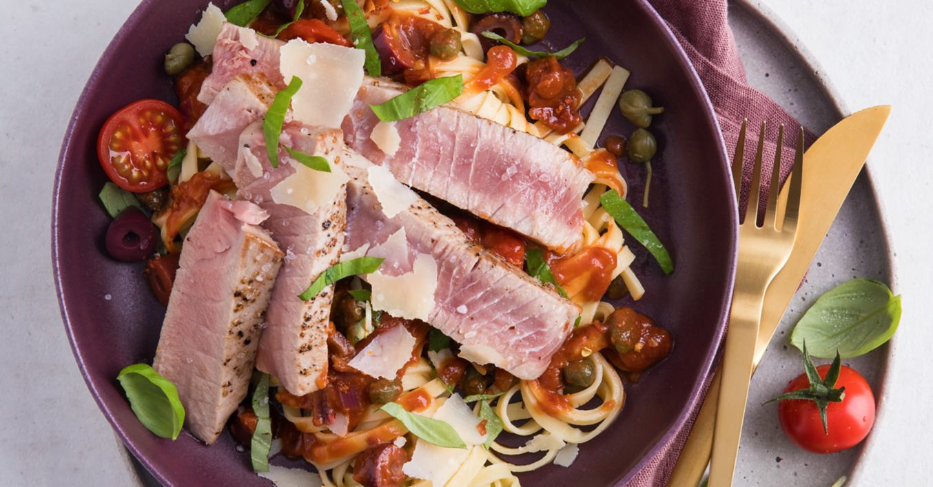 Thunfischsteaks mit Tagliolini alla Puttanesca