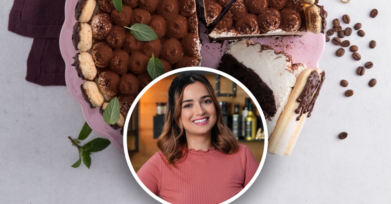 Löffelbiskuits vertikal am Rand der Torte anordnen, nach Bedarf kürzen.