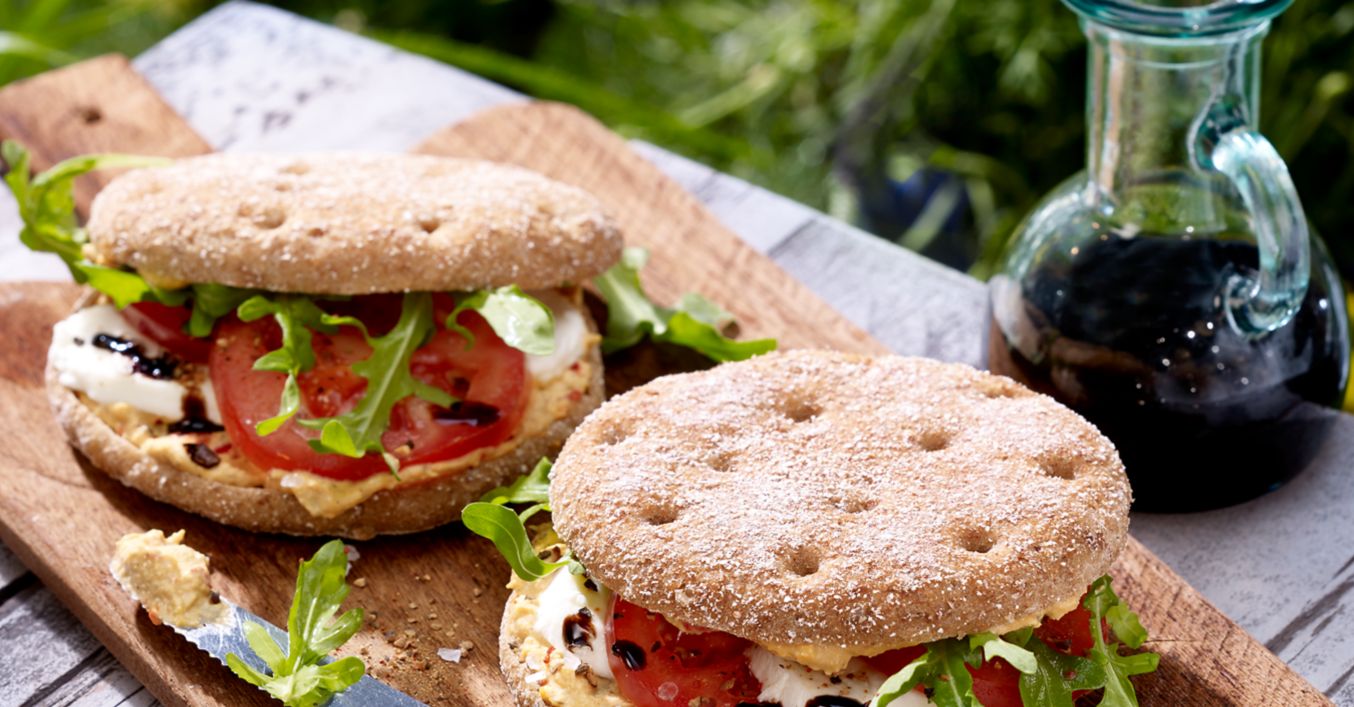 Die unteren Brötchenhälften mit Rucola, Tomaten und Mozzarella belegen, mit Salz und Pfeffer würzen und mit Balsamicocreme beträufeln. Obere Brötchenhälften auflegen und servieren.