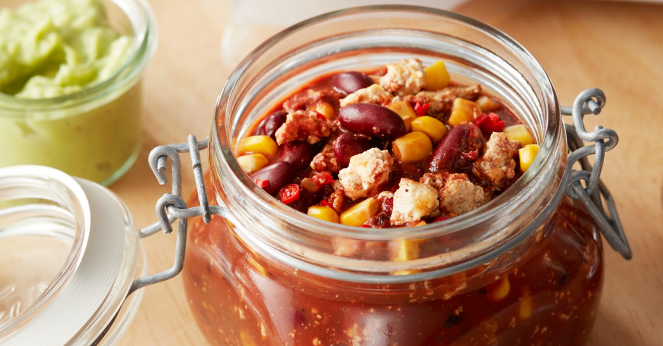 Die Schokolade in Stückchen brechen. Unter das Chili rühren und alles weitere 2 bis 3 Minuten garen. Nochmals mit Salz und eventuell Pfeffer abschmecken. Zum Mitnehmen abkühlen lassen, kühl stellen und am Arbeitsplatz in der Mikrowelle erwärmen. Mit der Guacamole essen.