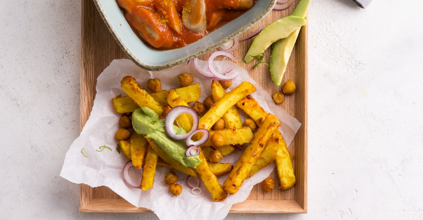 Vegane Currywurst mit Loaded Fries