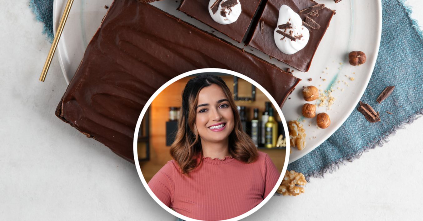 Für den Boden Haselnüsse, Walnüsse, Backkakao, Agavendicksaft und Cashewmus in einer Schüssel gut vermengen, bis eine klebrige Masse entsteht. Die Masse in eine mit Backpapier ausgelegte Form (17 Zentimeter x 25 Zentimeter) drücken und gleichmäßig verteilen.