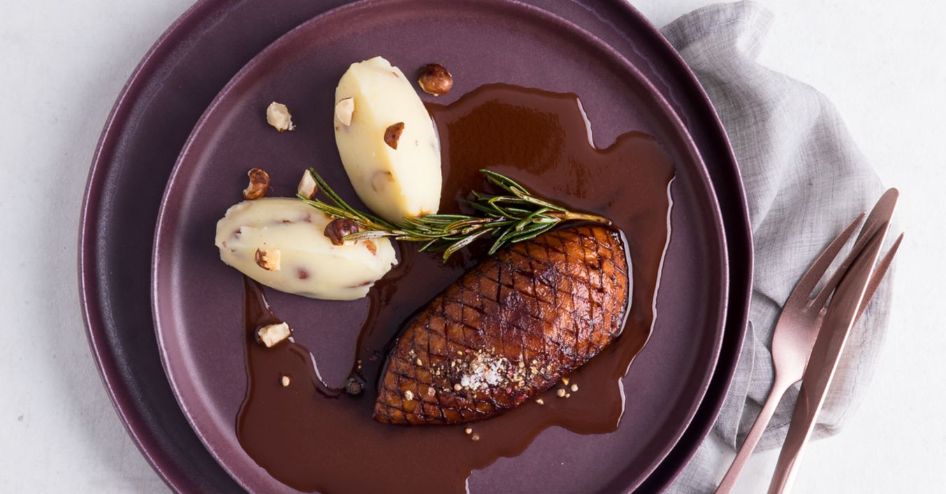 Vegane Sellerie-„Entenbrust“ mit Kartoffelstampf