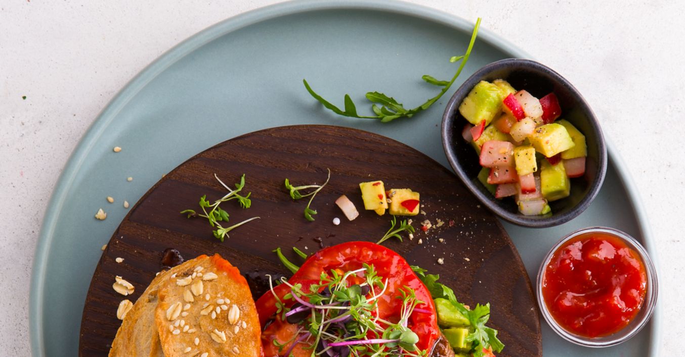 Veganer „Miracle Burger“ mit Avocado-Radieschen-Tatar
