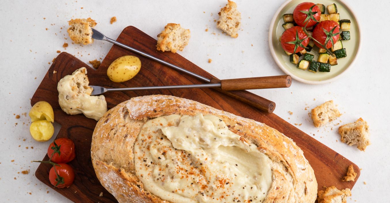 Veganes Fondue aus dem Brotlaib