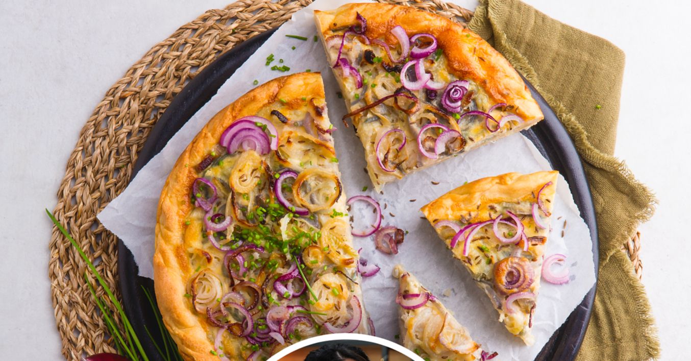 Vegetarischer Zwiebelkuchen mit Hefeteig