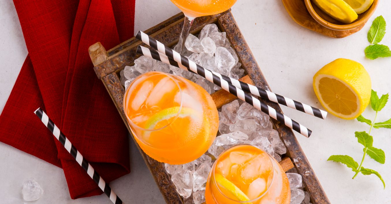 Aperol, Weißwein, Mineralwasser und Limonade in einem Glas verrühren.