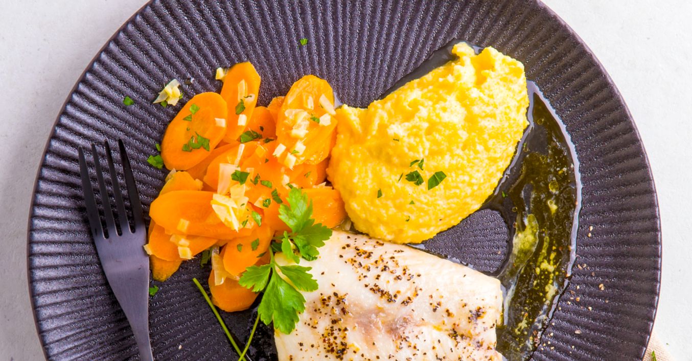 Viktoriabarschfilet mit Ingwer-Möhren und Polenta