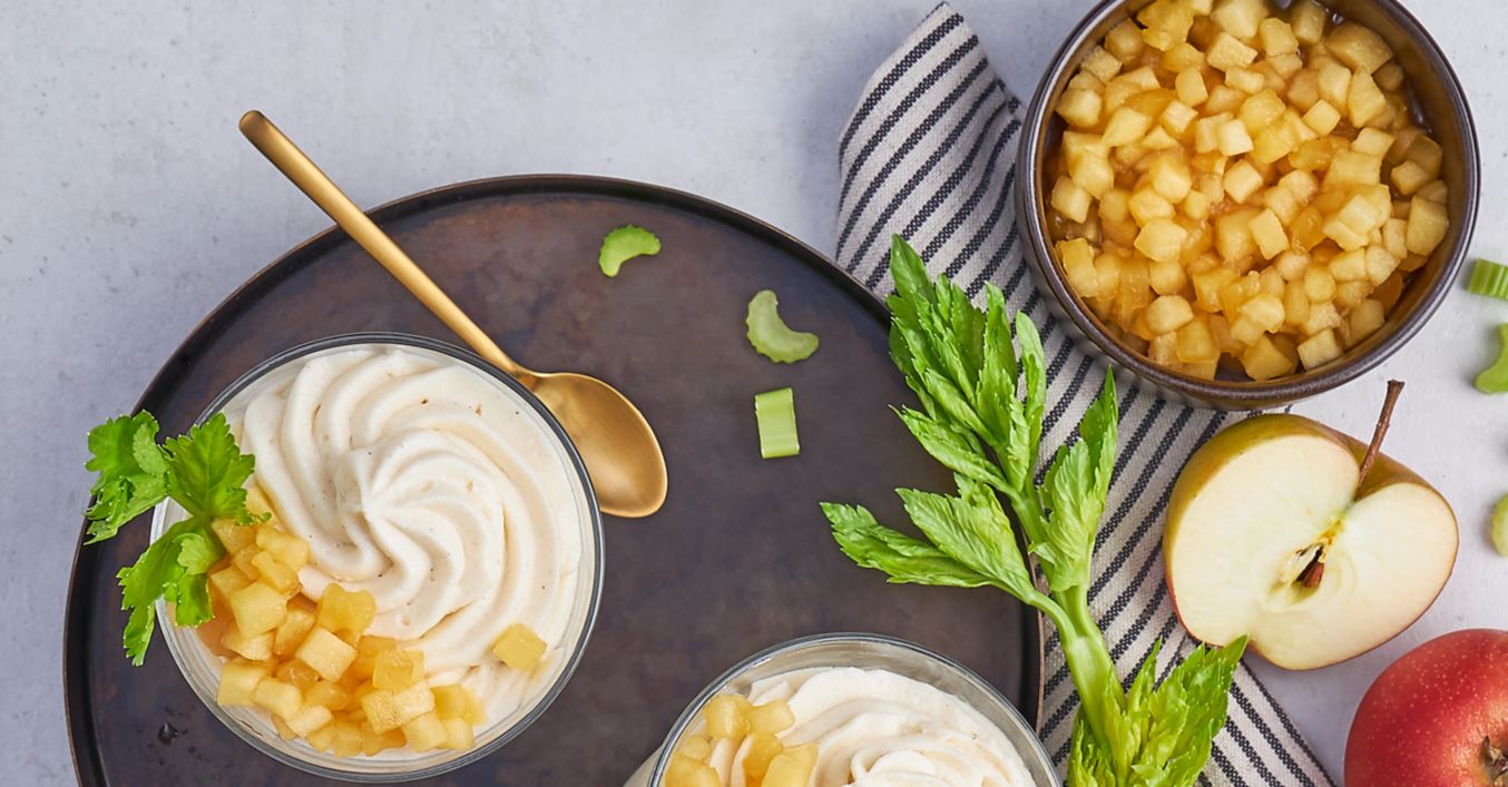 Weiße Schokoladen-Selleriemousse mit karamellisierten Äpfeln