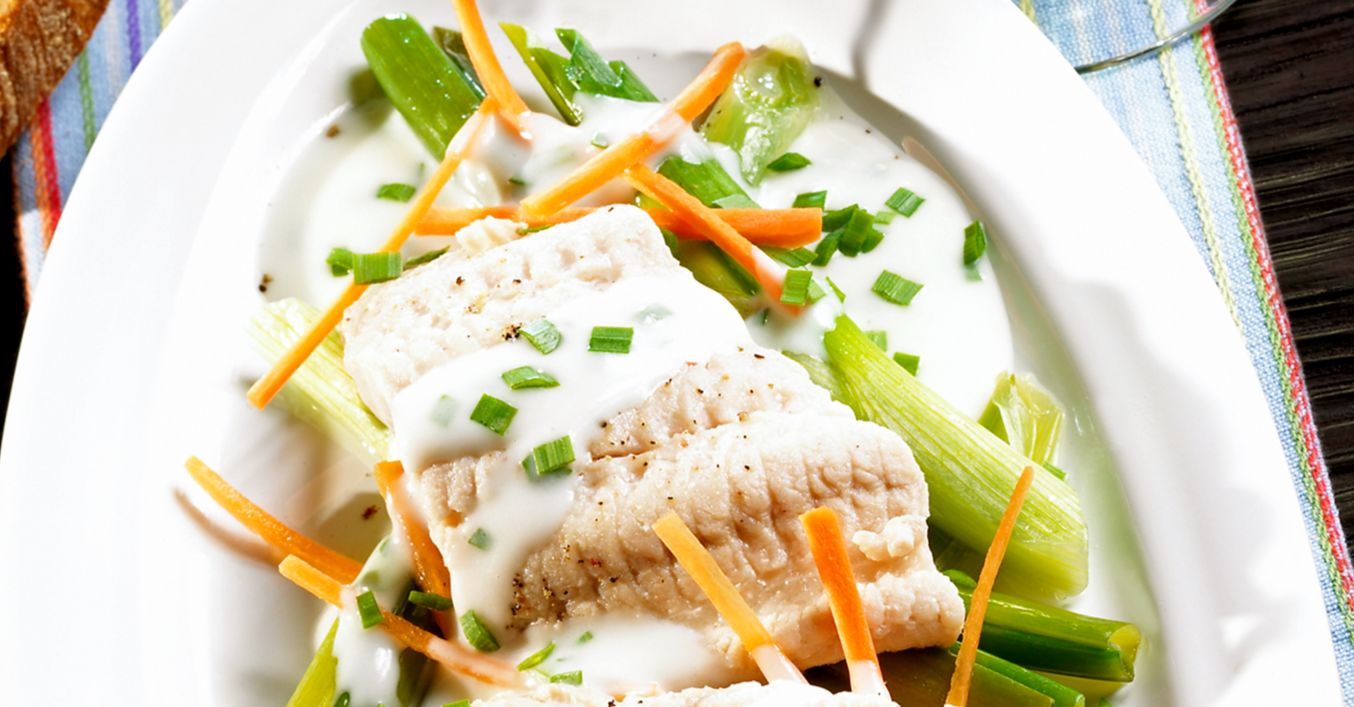 Welsfilets auf Lauch mit Roquefortsauce