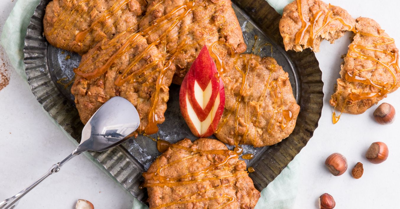 Frische und getrocknete Äpfel in kleine Stücke schneiden und zur Seite stellen. Mehl mit Haselnüssen, 1 Prise Salz und Backpulver mischen. Braunen Zucker, Margarine, Vanillezucker, Zimt, Milch und Ei schaumig schlagen. Apfelstücke und Mehlmischung esslöffelweise unterrühren.