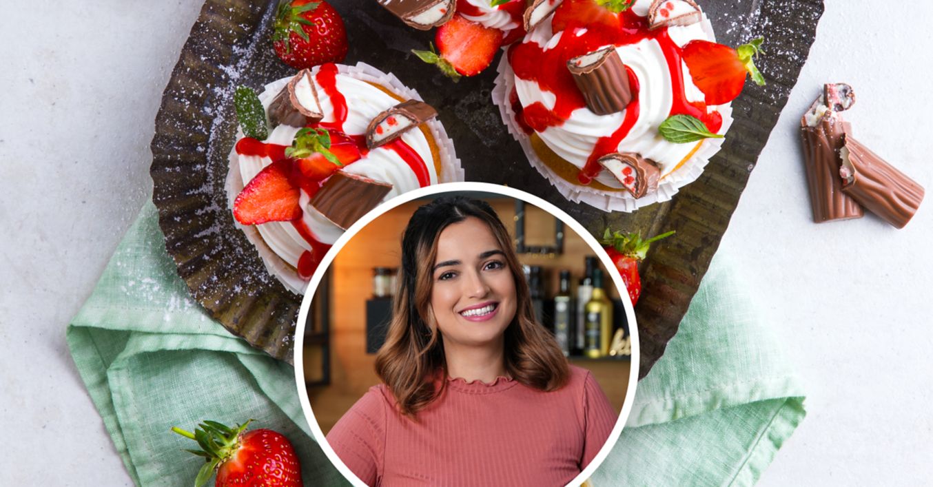 Für das Topping Erdbeeren pürieren und in einem Topf mit Speisestärke verrühren. Unter ständigem Rühren aufkochen und eindicken, anschließend vollständig auskühlen lassen.
