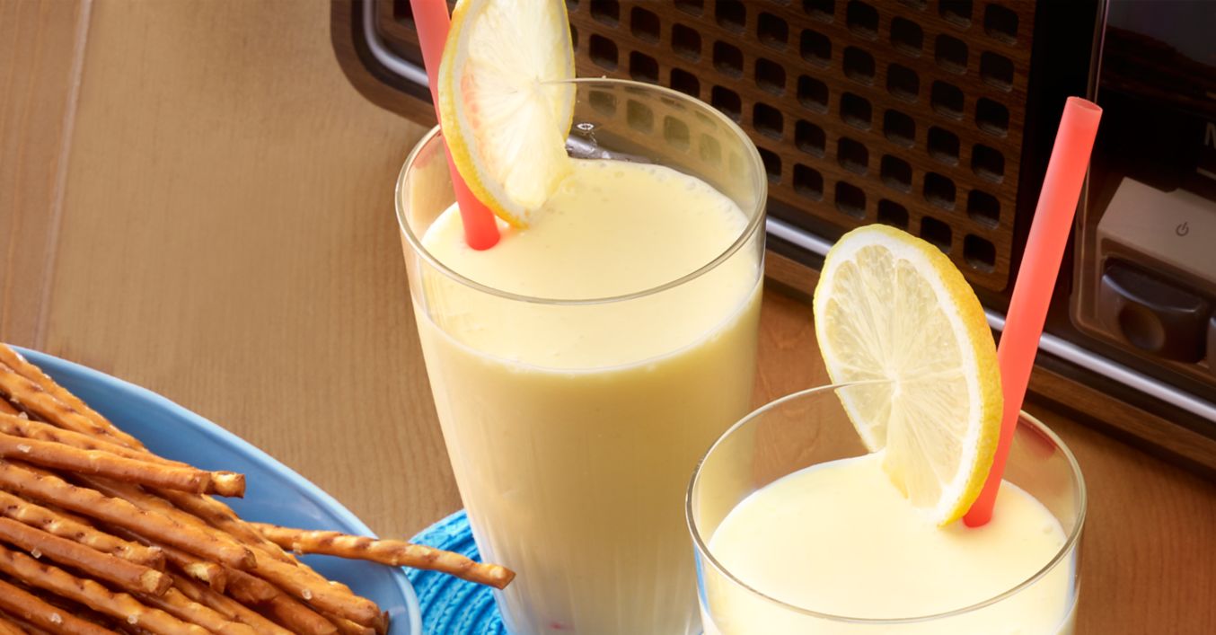 Alle Zutaten in einen Mixer geben, in ein Glas füllen, mit Zitronenscheibe garnieren und mit einem dicken Strohhalm servieren.