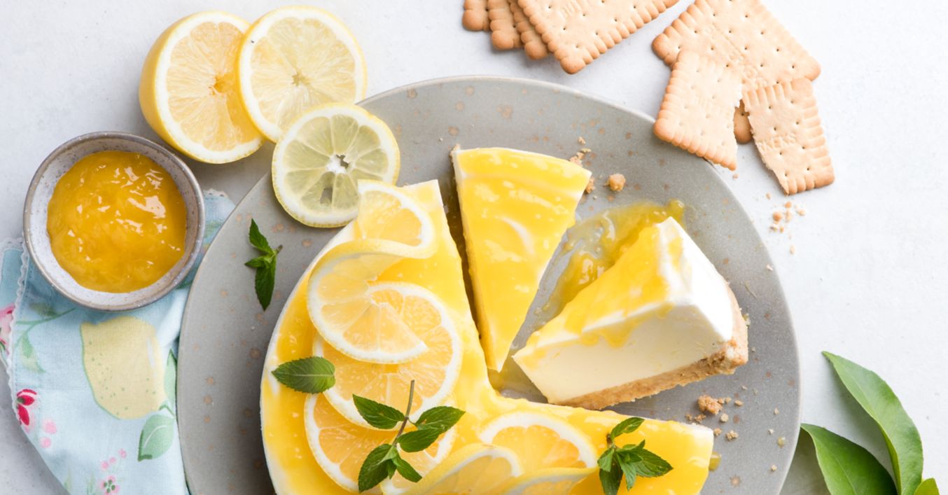 Zitrone waschen und in Scheiben schneiden. Vor dem Servieren Lemon Curd auf der Oberfläche verteilen und mit Zitronenscheiben garnieren.