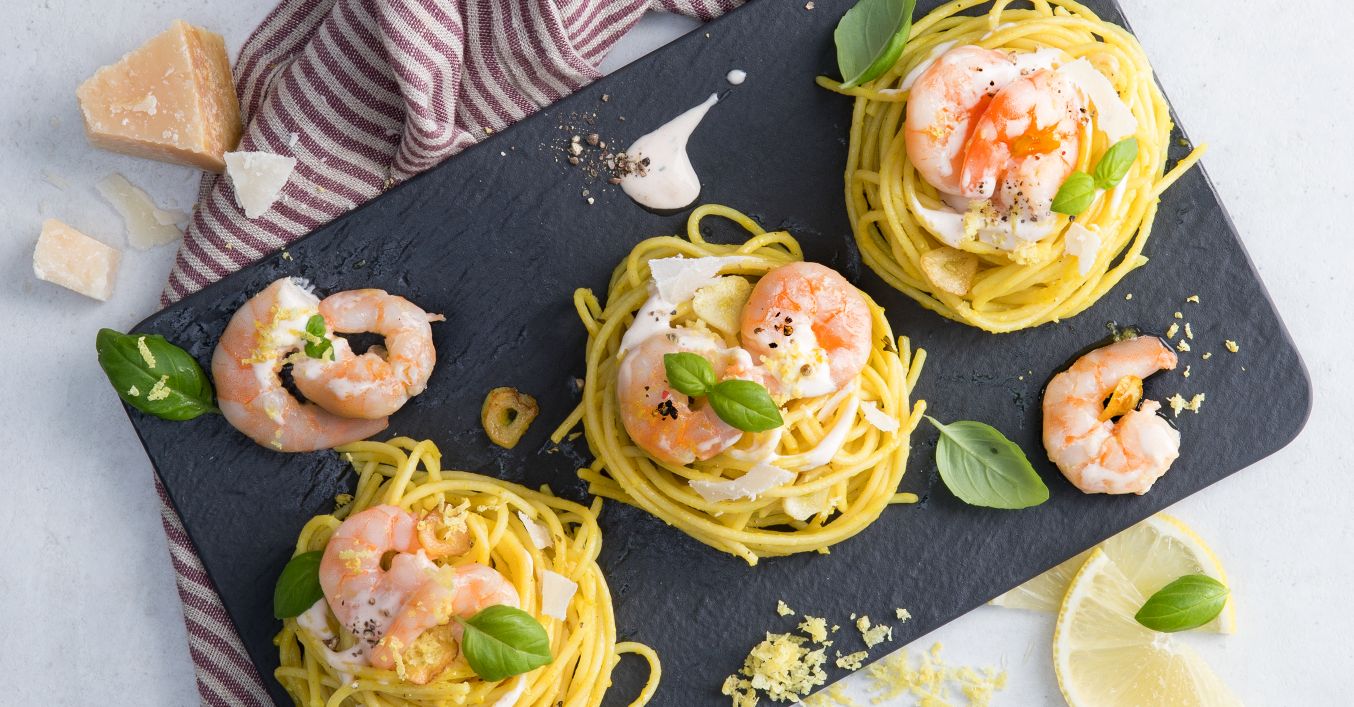 Zitronenspaghetti mit Garnelen