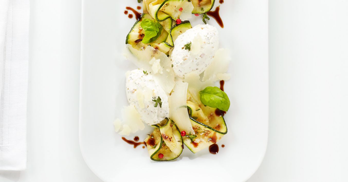 Zucchini-Carpaccio mit Frischkäsecreme