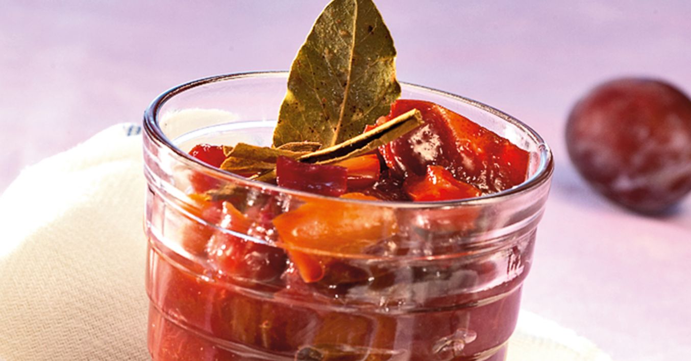Nach Wunsch mit Lorbeerblatt und Zimtstange garnieren. Zwiebel-Pflaumen-Chutney schmeckt gut zu geröstetem Brot, gegrilltem Fleisch oder Fisch.