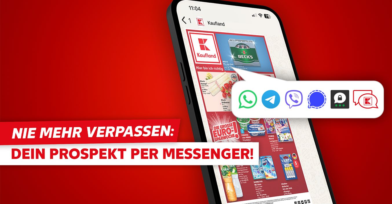 Mit unserem Messenger-Service erhältst du wöchentlich unseren aktuellen Prospekt mit den neuesten Angeboten direkt als Nachricht in deiner Messenger-App. Zusätzlich kannst du unser Prospekt auch über Telegram, WhatsApp, Signal, Threema oder Viber erhalten. Melde dich jetzt schnell und bequem an.
