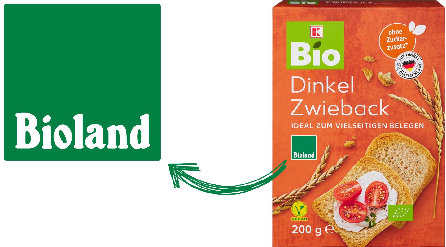 Bioland steht für regionale und ökologische Produkte aus Deutschland und Südtirol, die von den Bioland-Mitgliedern nach strengen, wissenschaftsbasierten Richtlinien angebaut und verarbeitet werden. Unser Ziel ist es, das Bio-Sortiment kontinuierlich auszubauen. Daher haben wir uns bewusst dafür entschieden, auch eine Vielzahl an Artikeln unserer Eigenmarke K-BIO zukünftig nach Bioland-Richtlinien anbauen und produzieren zu lassen. Durch die Kooperation mit Bioland verpflichten wir uns zu fairen Partnerschaften mit Erzeugern und Produzenten.